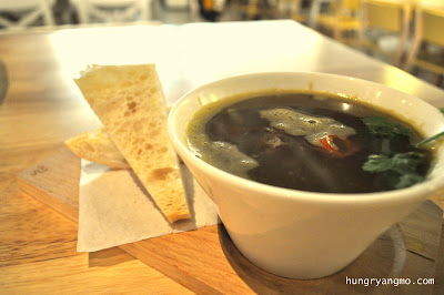 Sometimes you just wake up in the mood for soup, especially if it is a 'cold' day. Well, the weather outside was burning hot, but I still felt like something soupy, so I opted for the Organic Himalaya Lentils and Potato Soup. Price wise, I find that this dish is pretty reasonable, as they are using organic ingredients. I did have some issues with the texture and flavour of this soup, though. Firstly, the lentils are not blended in this soup, this means that the soup is very watery, with all the lentils sinking to the bottom. I would have preferred the soup to have been blended, so that the water and lentils conglomerate together and ultimately thicken the soup. Along with being too watery, I also found the soup lacking in salt. I'm not a big advocate of high salt food, but any lentil/pulse/daal dish needs a little extra salt to bring out its true flavours.